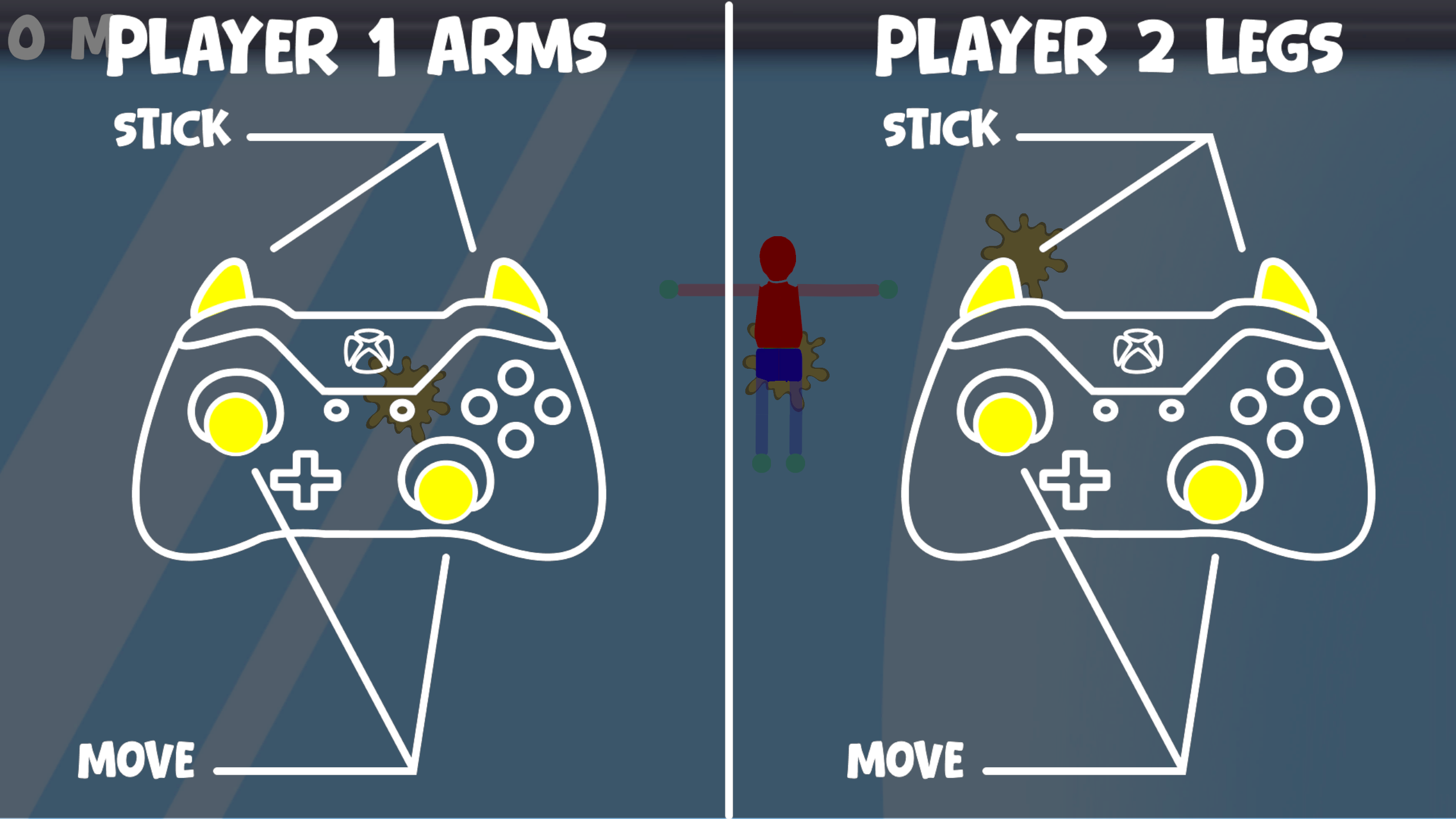 The twist ? You control the same character TOGETHER. A player control the highest part of the charcter, the other player control the lowest part. Get ready to yell at your friend who let go while you try to clim higher !
